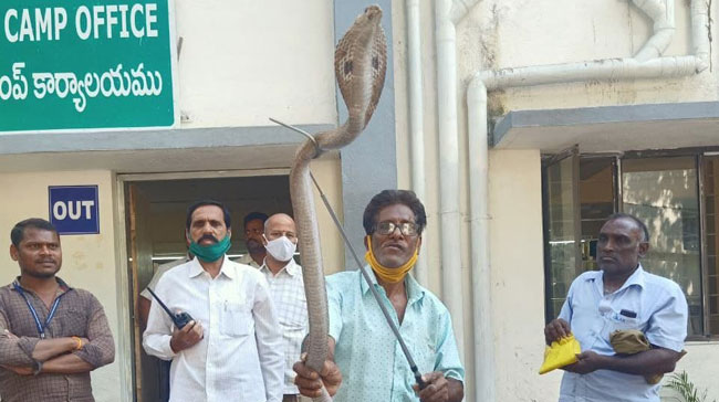 సమాచారం అందుకున్న టీటీడీ ఉద్యోగి, పాములు పట్టే భాస్కర్నాయుడు సంఘటనా స్థలానికి చేరుకున్నారు. తన వద్దనున్న పరికరాలతో పామును పట్టుకుని, దట్టమైన అడవిలో వదిలిపెట్టారు.