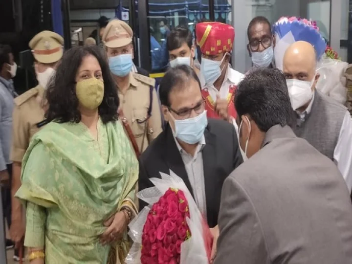 ఆంధ్రప్రదేశ్ ఉన్నత న్యాయస్థానం గౌరవ ప్రధాన న్యాయమూర్తిగా నియమితులైన జస్టిస్ ప్రశాంత్ కుమార్ మిశ్రా మంగళవారం విజయవాడకు చేరుకున్నారు. ఈ సందర్భంగా కృష్ణా జిల్లా కలెక్టర్ జె. నివాస్ జస్టిస్ ప్రశాంత్ కుమార్ మిశ్రాకు స్వాగతం పలుకుతూ పుష్పగుచ్చాన్ని అందజేశారు.
