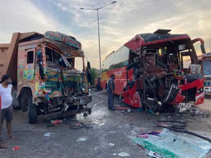 ఆంధ్రప్రదేశ్ రాష్ట్రంలో రోడ్డు ప్రమాదం సంభవించింది. కాకినాడ నుంచి హైదరాబాద్ వెళ్తున్న ట్రావెల్స్ బస్సును టిప్పర్ ఢీకొట్టింది. విజయవాడ-హైదరాబాద్ జాతీయ రహదారి లక్కారం సమీపంలో రోడ్డు ప్రమాదం జరిగింది.