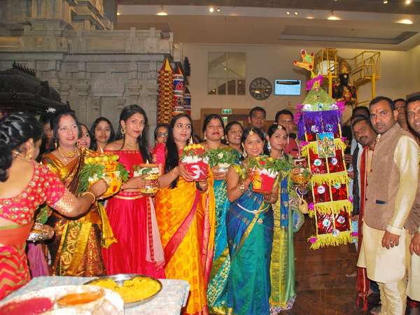 అమ్మవారికి కలశంతో స్వాగతం పలికితే అన్ని శుభాలే జరుగుతాయి. అలాగే అమ్మవారికి ఇష్టమైన ఆహారపదార్థాలు తయారుచేసి ఫలహారంబండిలో వేడుకగా ఆలయానికి తీసుకువెళుతారు. కొత్తకుండలో బియ్యం, పసుపు, బెల్లం, పాలు కలిపి ఆ కుండకు సున్నం పూసి వేపకొమ్మలు కట్టి తలపై పెట్టుకుని ఊరేగింపుగా వెళ్లి అమ్మవారికి సమర్పిస్తారు.