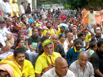 లోనికి అనుమతించడానికి వారు నిరాకరించడంతో శ్రీవారి భక్తులు, గోవింద మాలలో ఉన్న భక్తులు అక్కడే రోడ్డుపై బైటాయించారు. అధికారులకు వ్యతిరేకంగా నినాదాలు చేశారు. తమను వెంటనే క్యూలైన్లోకి అనుమతించాలని డిమాండ్ చేశారు. చివరకు తిరుమల తిరుపతి దేవస్థానం కార్యనిర్వహణాధికారి డి సాంబశివరావు అక్కడకు చేరుకుని వారికి నచ్చజెప్పడంతో ఆందోళన సద్దుమణిగింది. క్యూలైన్లలోకి అనుమతించారు.