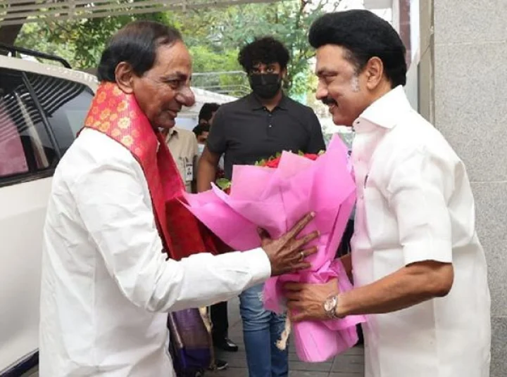 తమిళనాడు ముఖ్యమంత్రి ఎంకే స్టాలిన్తో తెలంగాణ రాష్ట్ర ముఖ్యమంత్రి కేసీఆర్ మంగళవారం సాయంత్రం సమావేశమయ్యారు. సాయంత్రం 4.50 నిమిషాలకు స్టాలిన్ నివాసంలోకి తన కుటుంబ సభ్యులతో వెళ్లిన సీఎం కేసీఆర్ 6.05 నిమిషాలకు బయటకు వచ్చారు. దాదాపు గంటా పది నిమిషాల పాటు ఇరు రాష్ట్రాల ముఖ్యమంత్రులిద్దరూ సమావేశమయ్యారు. ఈ సందర్భంగా వారిద్దరు వివిధ అంశంలపై చర్చించినట్టు తెలుస్తోంది.