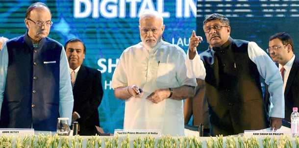 ప్రధానమంత్రి నరేంద్ర మోడీ నేతృత్వంలోని ఎన్డీయే ప్రభుత్వం మరో ప్రతిష్టాత్మక పథకానికి శ్రీకారం చుట్టింది. ఢిల్లీలో డిజిటల్ ఇండియా ప్రాజెక్టును ఆయన ప్రారంభించారు. 2019 నాటికి దేశంలోని 2,50,000 గ్రామాలను బ్రాడ్బ్యాండ్ ఇంటర్నెట్ ద్వారా అనుసంధానించడం ఈ ప్రాజెక్టు లక్ష్యం. తద్వారా ఈ-గవర్నెన్స్, అనుసంధానిత ఆర్థికవ్యవస్థగా మార్చాలనేది ప్రభుత్వ ఉద్దేశం. అలాగే, ఈ పథకం ద్వారా 18 లక్షల ఉద్యోగ అవకాశాలు వస్తాయని ఆయన చెప్పుకొచ్చారు.