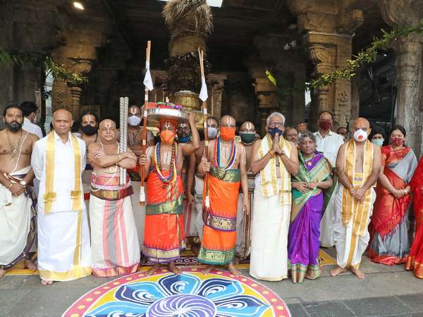 శ్రీ మలయప్పస్వామి, అమ్మవార్ల, విష్వక్సేనుల వారి ఉత్సవ మూర్తులను గరుడాళ్వారు సన్నిధిలో అభిముఖంగా ఉంచి ఆస్తానం నిర్వహించారు. స్వామి, అమ్మవార్లకు ప్రత్యేకపూజలు నిర్వహించి కర్పూర మంగళహారతులు సమర్పించి ప్రసాద నివేదనను అర్చక స్వాములు ఆగమోక్తంగా నిర్వహించారు.