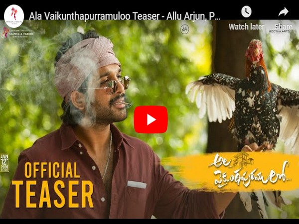 స్టైలిష్ స్టార్ అల్లు అర్జున్, మాటల మాంత్రికుడు త్రివిక్రమ్ శ్రీనివాస్ కాంబినేషన్లో వస్తున్న చిత్రం అల వైకుంఠపరుములో. సంక్రాంతికి ప్రేక్షకుల ముందుకురానుంది. అయితే, ఈ చిత్రం ప్రమోషన్ కార్యక్రమాల్లో భాగంగా, బుధవారం ఈ చిత్రం టీజర్ను చిత్ర యూనిట్ రిలీజ్ చేసింది.