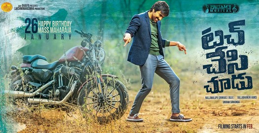 తాజాగా రవితేజ-రాశిఖన్నా-లావణ్య త్రిపాఠి కాంబినేషన్లో రానున్న ఫిల్మ్ 'టచ్ చేసి చూడు'. ఈ సినిమాకు సంబంధించిన మోషన్ పోస్టర్తో కూడిన ఫస్ట్ లుక్ సోషల్ మీడియాలో రిలీజైంది. విక్రమ్ సిరి డైరెక్షన్లో రానున్న ఫిల్మ్ని నల్లమలుపు శ్రీనివాస్, వల్లభనేని వంశీలు నిర్మిస్తున్నారు. ప్రస్తుతం నటీనటుల ఎంపిక జరుగుతోంది. అంతా ఓకే అయితే ఫిబ్రవరి నుంచి రెగ్యులర్ షూటింగ్ జరగనుంది.