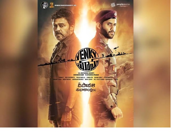 దీపావళి సందర్భంగా వెంకీమామ పోస్టర్ను రిలీజ్ చేసారు. అల్లుడు ఆర్మీ డ్రెస్లో రఫ్గా కనిపిస్తుంటే వెంకీ మామ మాస్ లుక్తో దర్శనమిచ్చాడు. దీపావళి సందర్బంగా రిలీజ్ చేసిన ఈ పోస్టర దగ్గుబాటి – అక్కినేని అభిమానులకు మంచి కిక్ ఇచ్చింది. గతంలో ఎప్పుడు లేని విధంగా వెంకటేష్ – నాగ చైతన్య సరికొత్త థ్రిల్ ఇవ్వనున్నట్లు అర్ధమవుతోంది.