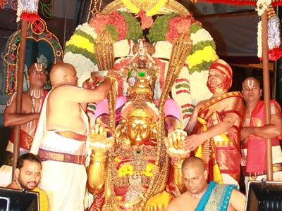 గోదాదేవి అలంకరించిన పూలమాలలను తీసుకువచ్చి శ్రీవారి బ్రహ్మోత్సవాల్లో గరుడసేవలో స్వామివారికి అలంకరించి వూరేగించారు. రాష్ట్ర ప్రభుత్వం తరపున ముఖ్యమంత్రి సమర్పించిన నూతన పట్టు వస్త్రాలను గరుడసేవ రోజున స్వామివారికి అలంకరించారు. చెన్నయ్ నుంచి వచ్చిన కొత్త గొడుగుల నడుమ వేంకటేశ్వర స్వామి ఊరేగారు. రాత్రి పొద్దుపోయే వరకూ ఈ ఉత్సవం కొనసాగింది. దాదాపుగా 3 లక్షల మంది ఈ ఉత్సవాన్ని తిలకించారు.