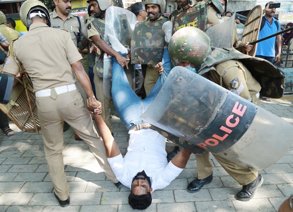 శబరిమల అయ్యప్ప ఆలయంలో ఇద్దరు మహిళలు ప్రవేశించడాన్ని నిరసిస్తూ ఈ నెల 3వ తేదీన హర్తాళ్కు పిలుపు ఇచ్చిన నాటినుంచి శనివారం రాత్రి వరకు జరిగిన హింసాత్మక ఘటనలకు సంబంధించి 1,869 కేసులు నమోదు కాదు 5700 మందిని అరెస్టు చేశారు. కన్నూర్ జిల్లాలో 169 కేసులు నమోదుచేసి 230 మందిని, పాలక్కడ్ జిల్లాలో 166 కేసులు నమోదుచేసి 298 మందిని అరెస్టుచేసినట్టు ఆయన వివరించారు. మరోవైపు ఆందోళనకారులకు ముఖ్యమంత్రి పినరయి విజయన్ హెచ్చరికలు చేశారు.