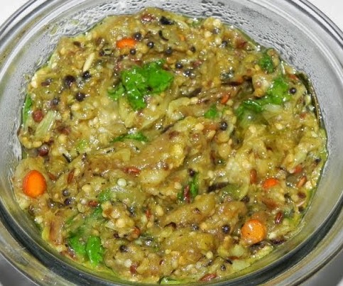 వంకాయలకు కొద్దిగా నూనె రాసి స్టౌ మీద పెట్టి కాల్చుకోవాలి. చల్లారిన తరువాత పైన పొట్టు తీసి, (పురుగులున్నాయేమో చూసి) మెత్తగా చేతితో మెదపాలి. తర్వాత పచ్చిమిర్చి, ఉప్పు, చింతపండు కలిపి మిక్సీ పట్టాలి. వంకాయ గుజ్జును మరీ మెత్తగా కాకుండా మిక్సీ పట్టి తీసేయాలి. ఇప్పుడు బాణలిలో నూనె వేసి కాగాక పోపు సామాను ఒకొక్కటిగా వేస్తూ దోరగా వేయించి, చల్లారాక పచ్చడిలా కలపాలి. చివరిగా ఉల్లి తరుగు, కరివేపాకు, నువ్వులపొడి వేసి కలపాలి. సర్వింగ్ బౌల్లోకి తీసుకుని కొత్తిమీరతో గార్నిష్ చేయాలి. అంతే నోరూరించే వంకా బజ్జీ రెడీ. ఇందులో నెయ్యి వేసుకుని వేడి వేడి అన్నంలో కలుపుకుని తింటే భలే ఉంటుంది. ట్రై చేసి చూడండి మరి.